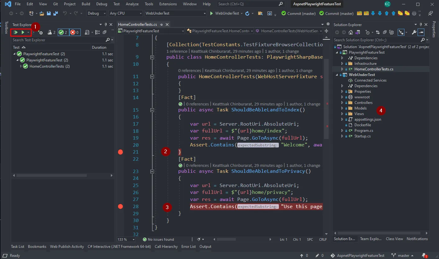 - เราสามารถทดสอบ E2E test ได้เลยจาก vs2019 ตามรูปครับ